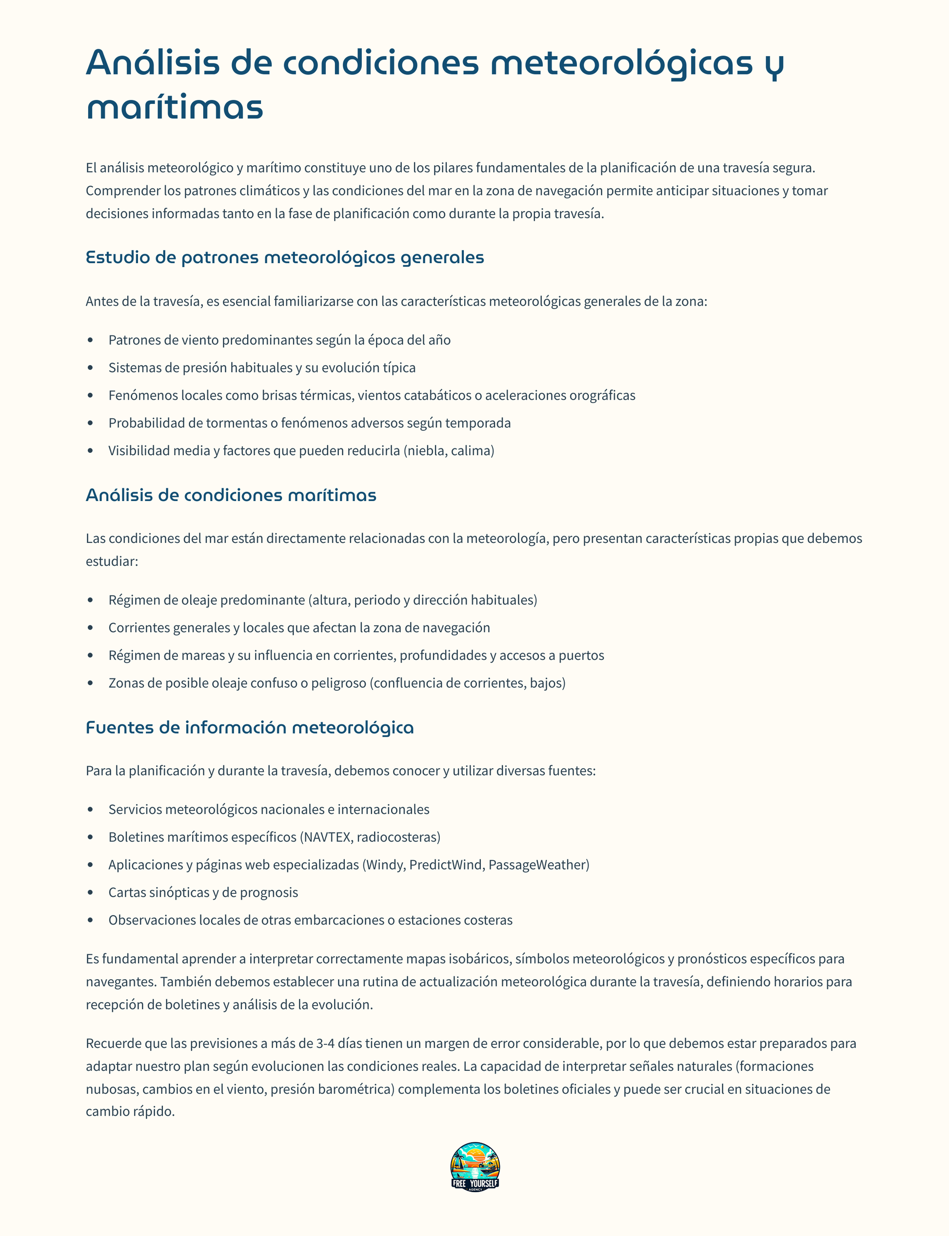 🔹 Condiciones meteorológicas y marítimas → Cómo interpretar pronósticos y adaptar la travesía.